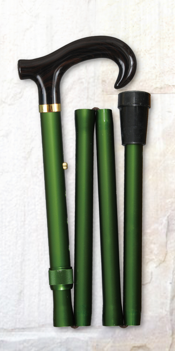 瀬川商店オリジナル、完全日本製のアルミ製ステッキです。4段折り畳み式で、4段階に長さの調節ができます。新潟県のアルミパイプ工場、千葉県のメッキ工場、東京下町の三脚工場で加工を行い、大阪府の樹脂成型工場でハンドルを製造。瀬川商店で組み立てました。本体カラーは6色、樹脂製手元は木目調の塗装仕上げです。男性用はハンドルが大きくて握りやすくなっています。